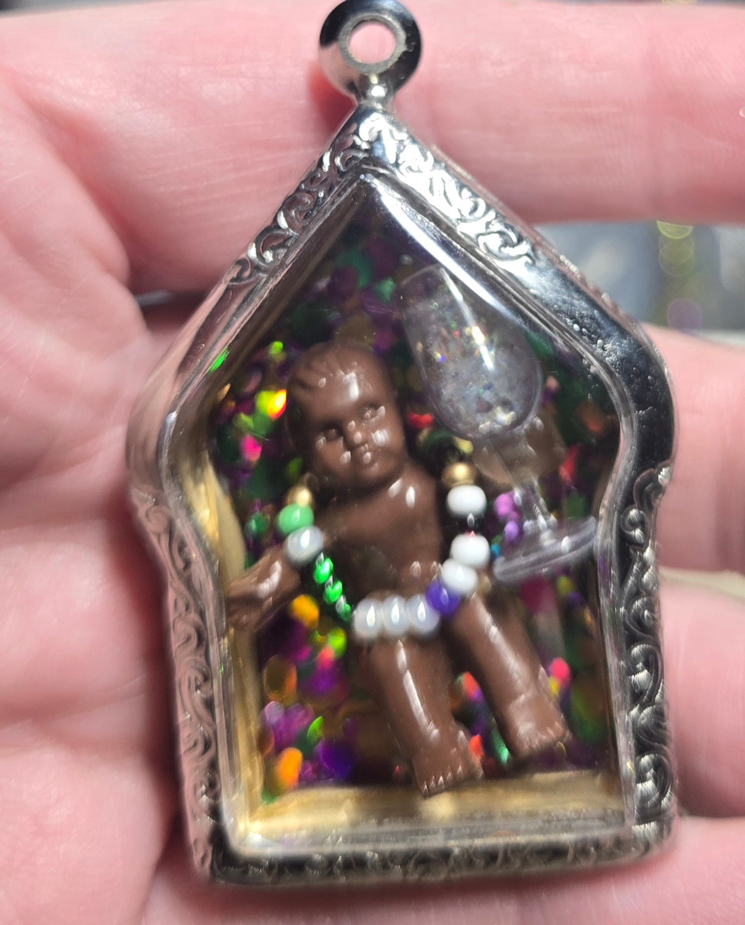 Bad Babies are sdata:text/mce-internal,rte__editor,Theealed into an acrylic amulet pendant and come on a hand strung glass bead necklace. Necklaces are 27" and go on over the head unless otherwise specified. Please email MiscellaneousMae@gmail.com for any requests or custom quotes.
