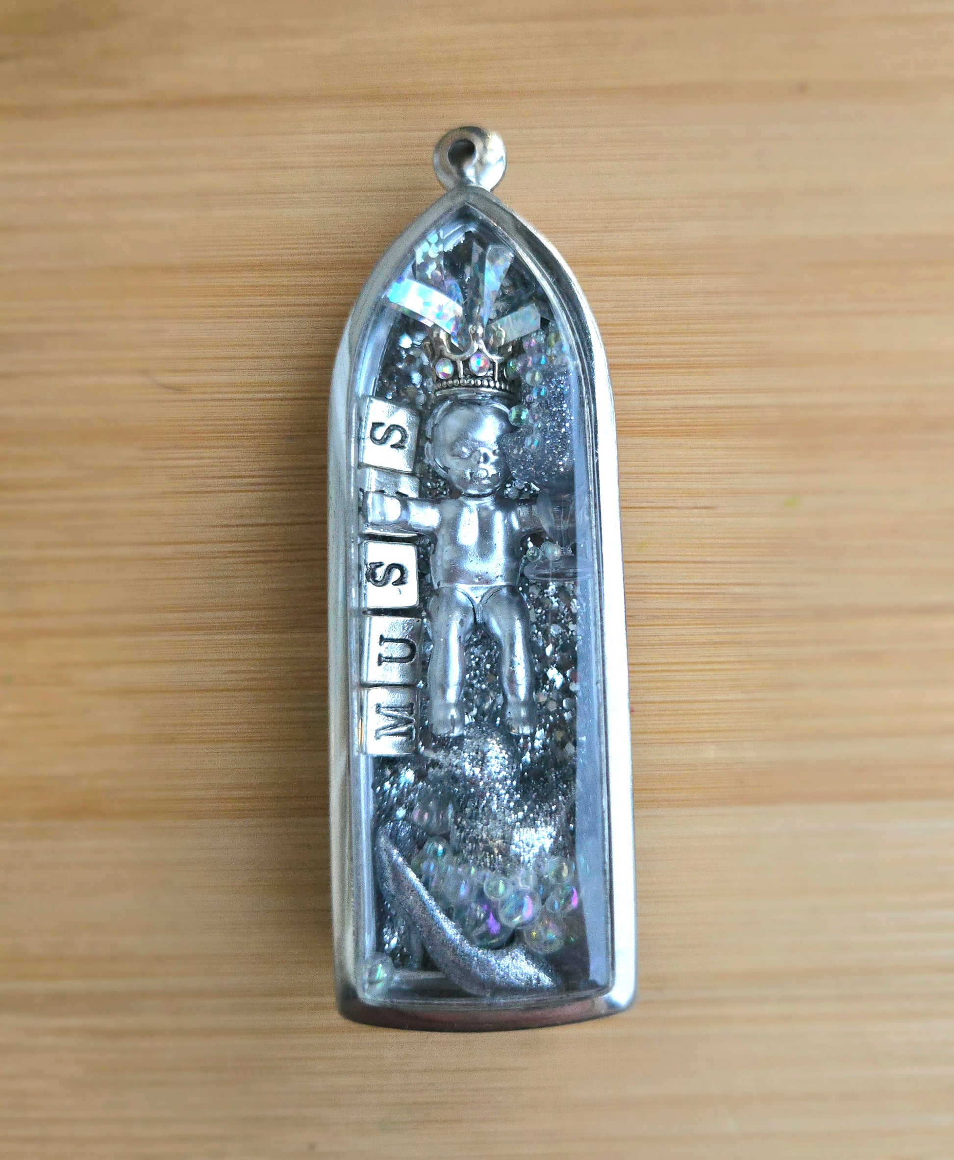These specialty Bad Babies are sealed into an acrylic amulet pendant and come on a hand strung glass bead necklace. Necklaces are 18" with a stainless steel lobster clasp and 2" chain extender unless otherwise specified. Please email MiscellaneousMae@gmail.com for any requests or custom quotes.Â